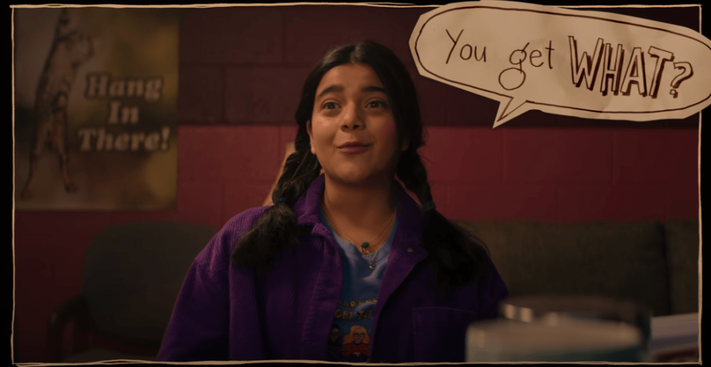 The reactions I’ve seen so far online, whether it be the comment section of the trailer to multiple tweets, have not been great. There’s quite an uproar about the change in powers. This is where expectations come into play. As someone who had zero idea what Ms. Marvel was about, I think it looks cool. Someone who expected a rubbery, stretchy superhero faithful to the comics might not be as forgiving to the changes. But to me, I don’t think the powers are important here. The show isn’t about Ms. Marvel’s powers, it’s about Ms. Marvel, Kamala Khan. Her growth and development over the course of the series is what I’m interested in, not whether her arm blows up like a balloon vs shooting sparkly crystals from her hands.