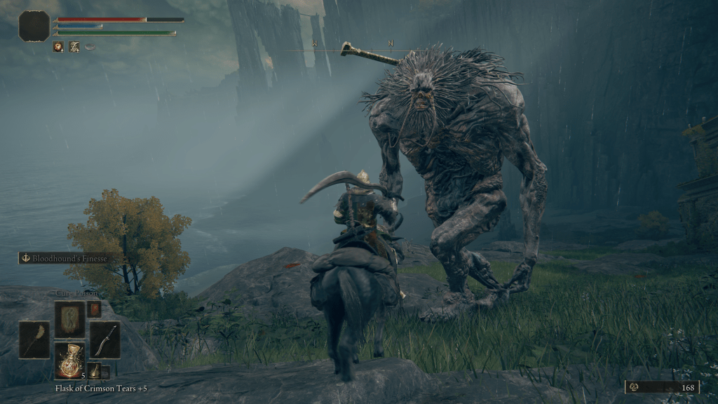 Okay, the story: I really have no idea what’s happening. I’m over 20 hours in, which for this game is a drop in the bucket. Please note: this is not a full game review. This is a FromSoft new guy gushing about the incredible experience I’m having. I’m used to games throwing the story in your face and shoving it down your throat. None of that happens here. In the very beginning there’s essentially a slideshow cut-scene giving you the lowdown of the Lands Between and the shattering of the Elden Ring. Now, some people may have hung on to every word, and need that story as they go. And that’s fine. Personally, I have no clue why I’m doing what I’m doing, and truthfully I don’t care one bit. That’s not to say it isn’t interesting – there is certainly some incredible lore here. It’s just that you don’t need to know every line of backstory to enjoy the game.